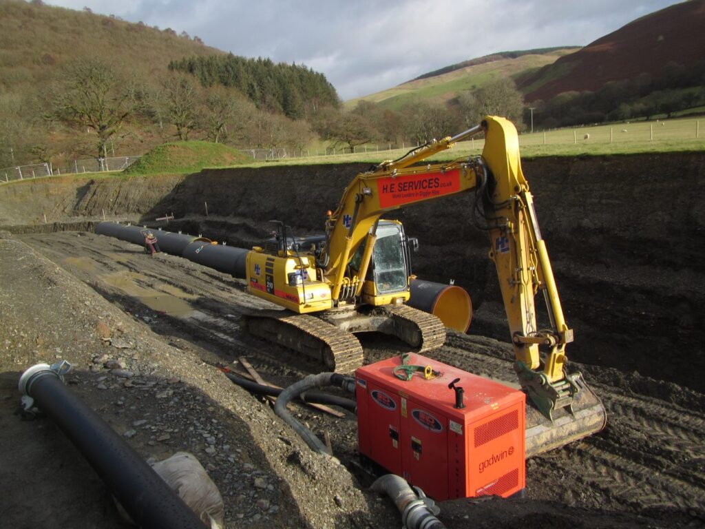 The hydro plant will siphon excess water from the river Towy, always leaving the first 700 litres per second in the river. This water is then pooled before being piped up to the siphon block, and then down to the powerplant. On average the siphon will take 1/3 of the water that used to flow down the Towy.